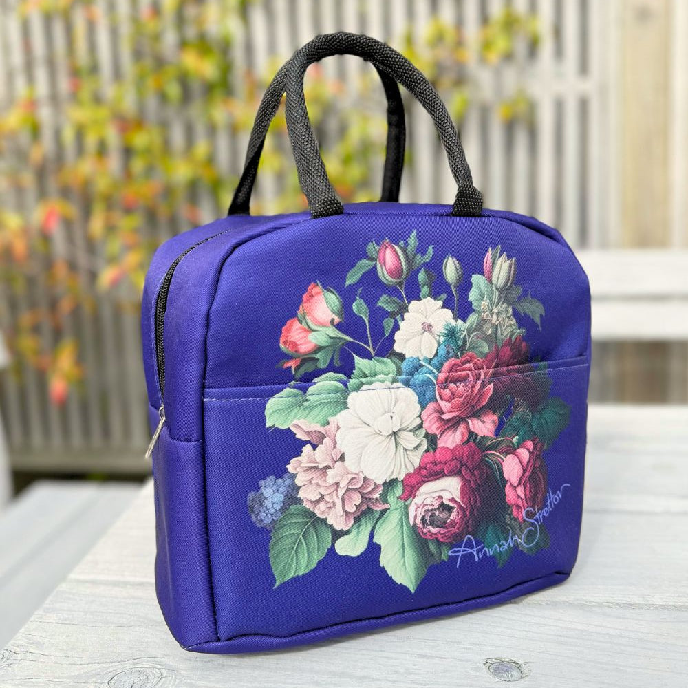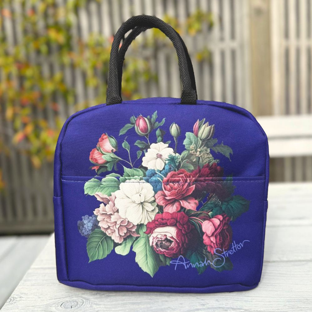 Add a touch of elegance to your everyday routine with the Navy J’adore Roses Floral Insulated Tote by Annah Stretton. This versatile and stylish insulated bag serves multiple purposes: